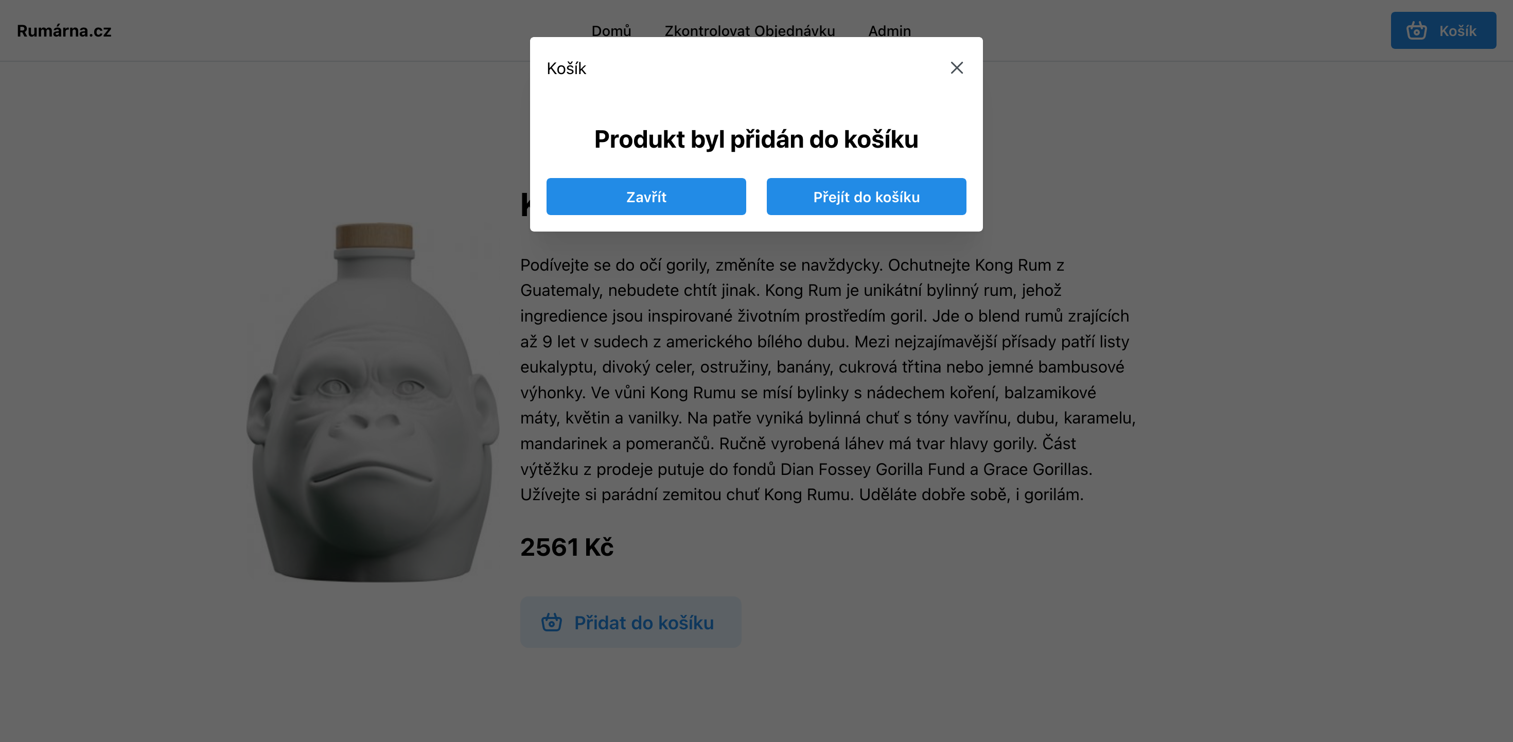Po kliknutí se Vám ukáže zpráva s textem ,,Produkt byl přidán do košíku". Teď klikněte na tlačítko Košík