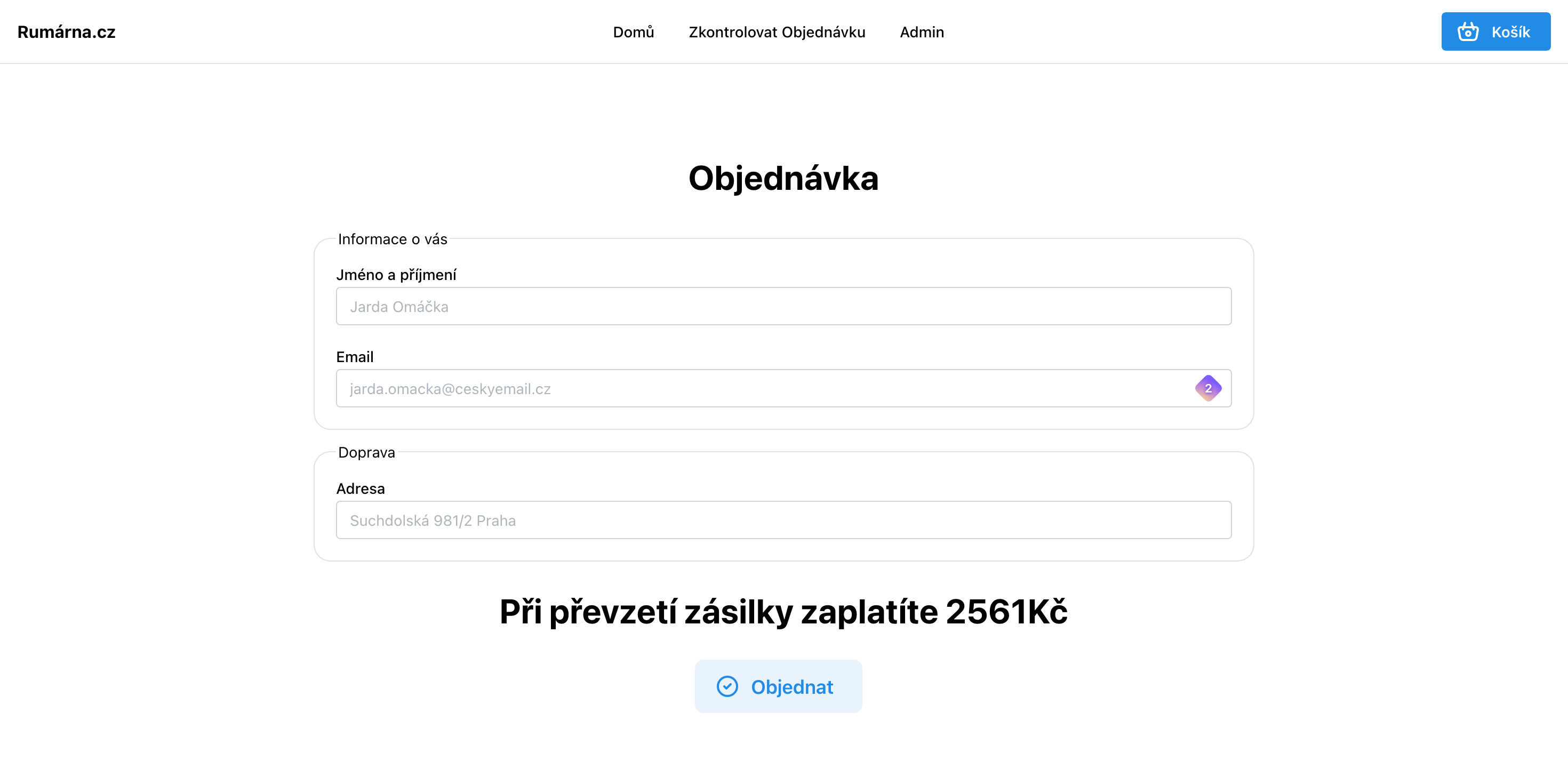 Objednávka produktu